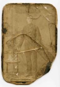 ![]() | Here is a torn photo where there was damage to the face but not through the important facial features, so this was not too difficult. The unwanted lettering was also removed. A repair like this would cost about £20. | ![]() |